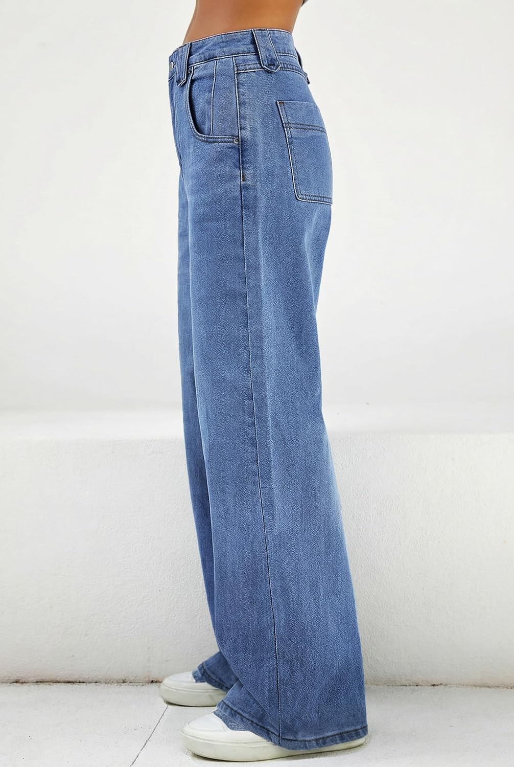 8 reviews for EMMIOL Baggy Jeans Women Straight Leg Mid Rise Boyfriend Wide Leg High Waisted Cute Trendy Y2K Loose Fit Pants Stretchy