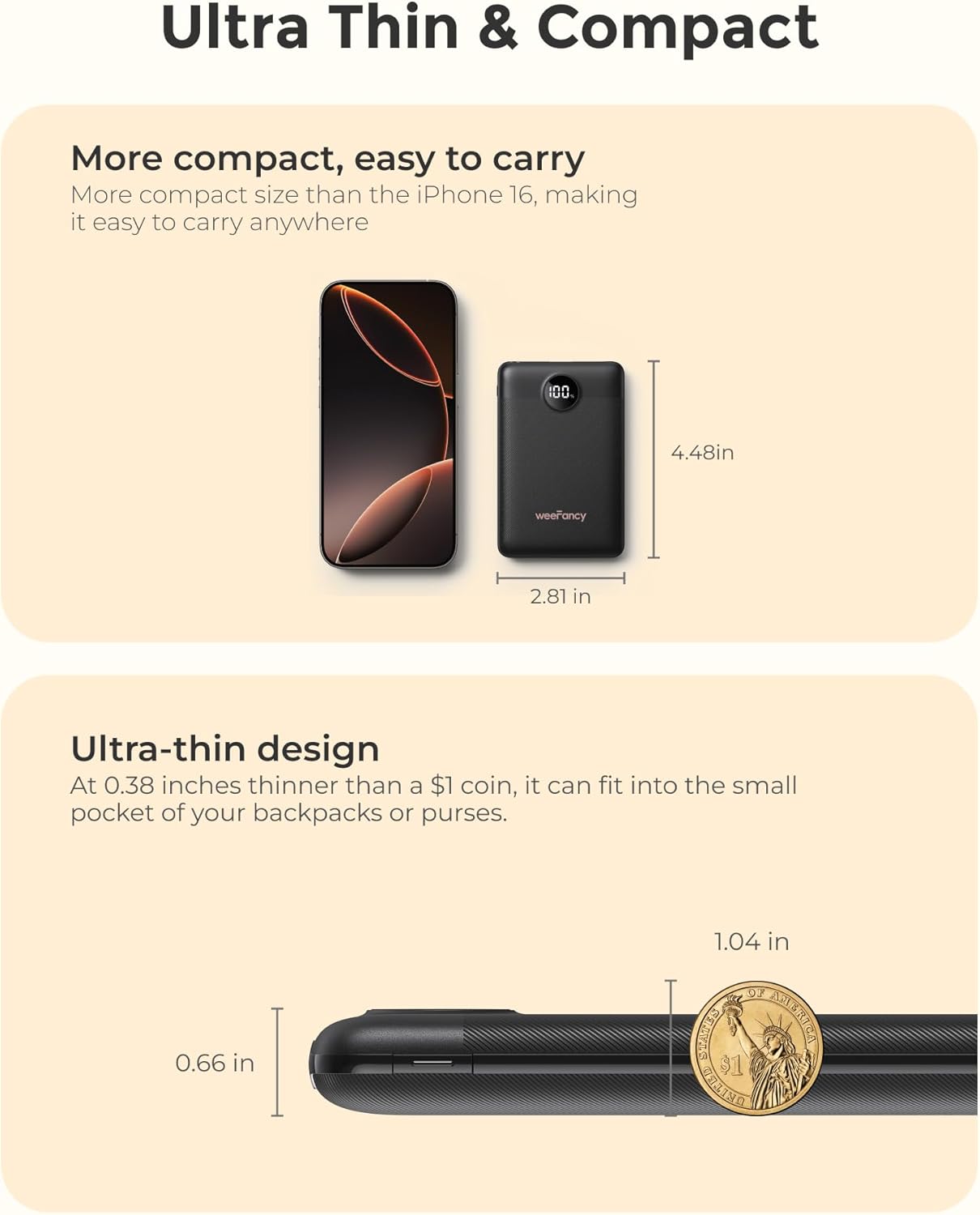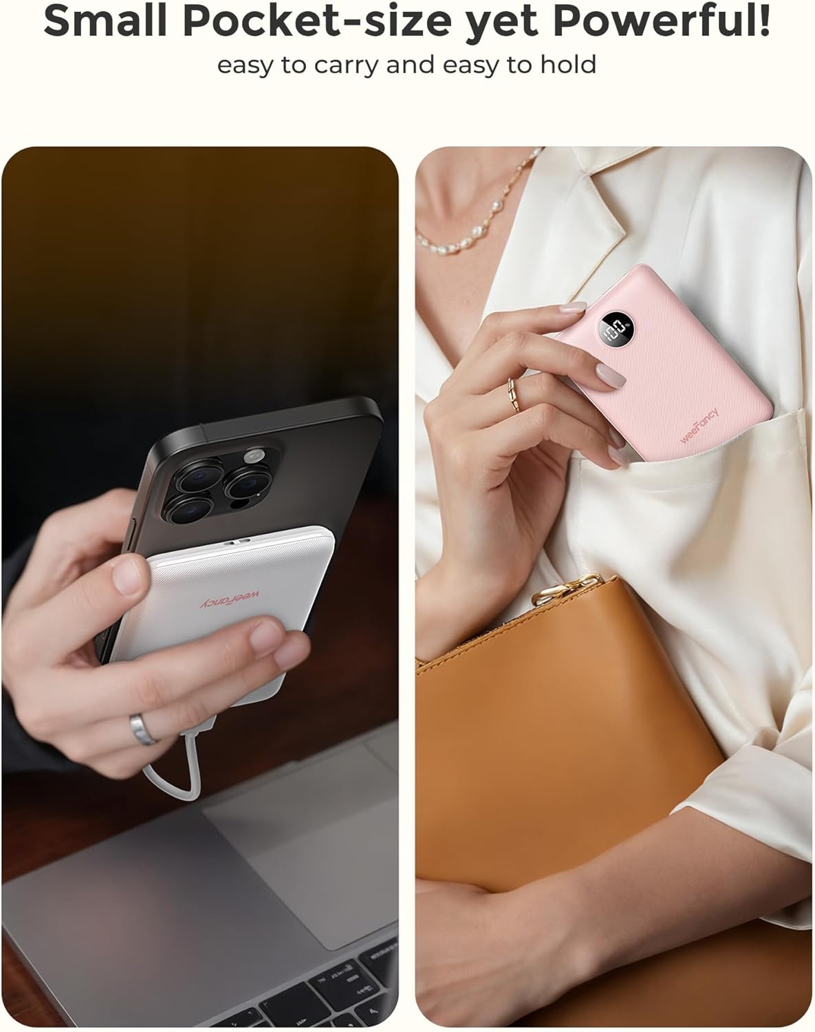 Simple Use & Multi-Device Compatibility: The WeeFancy mini portable charger with 3 output ports (USB-A x1 and USB-C x2) is perfectly compatible with iPhone 17/16/15/14, Samsung Galaxy S25/S24/Z Fold, Google Pixel 9/8/7, iPad & AirPods. Universal compatibility for 99% of devices