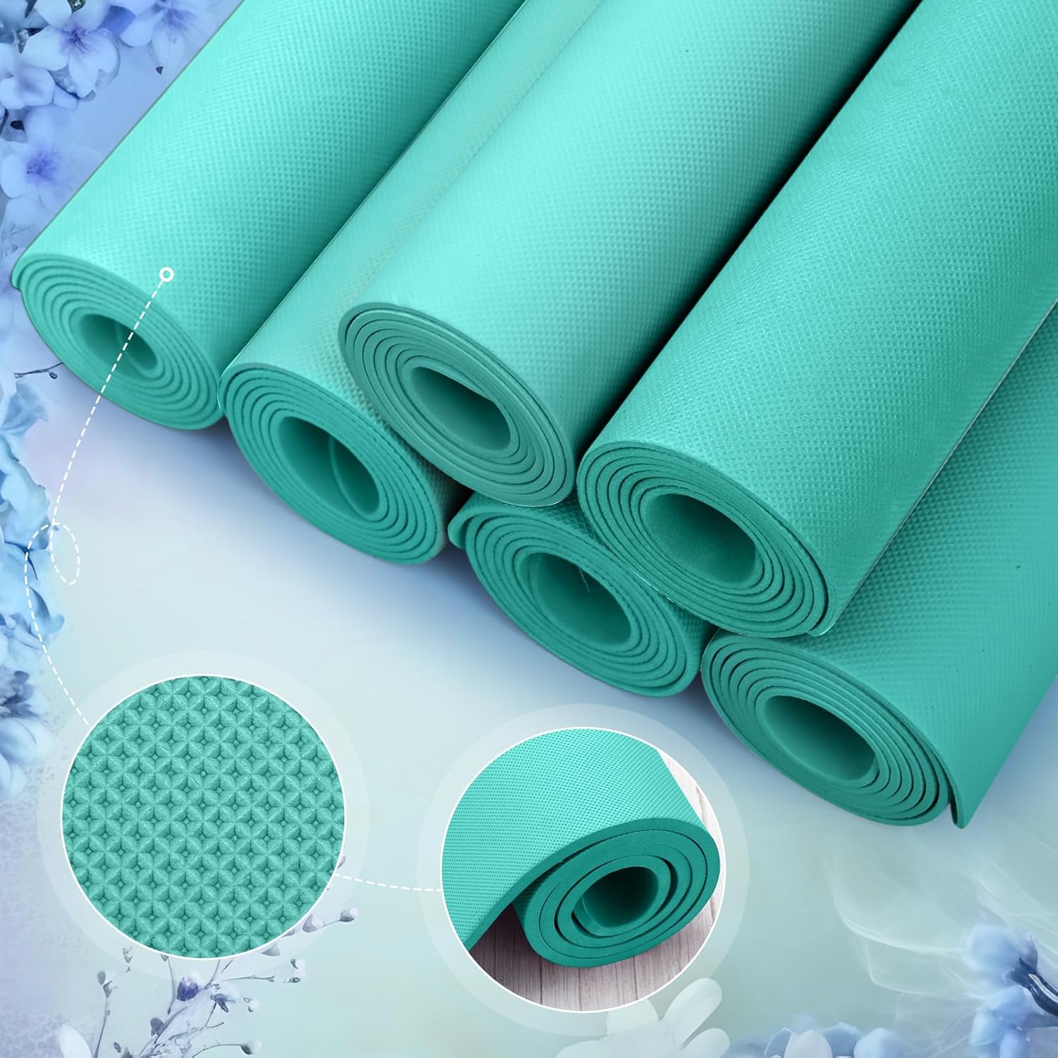 Yoga Mat: you will receive 6 yoga mats in blue-green colors; The abundant quantity and bright colors can satisfy your daily use needs and are easy to switch and share