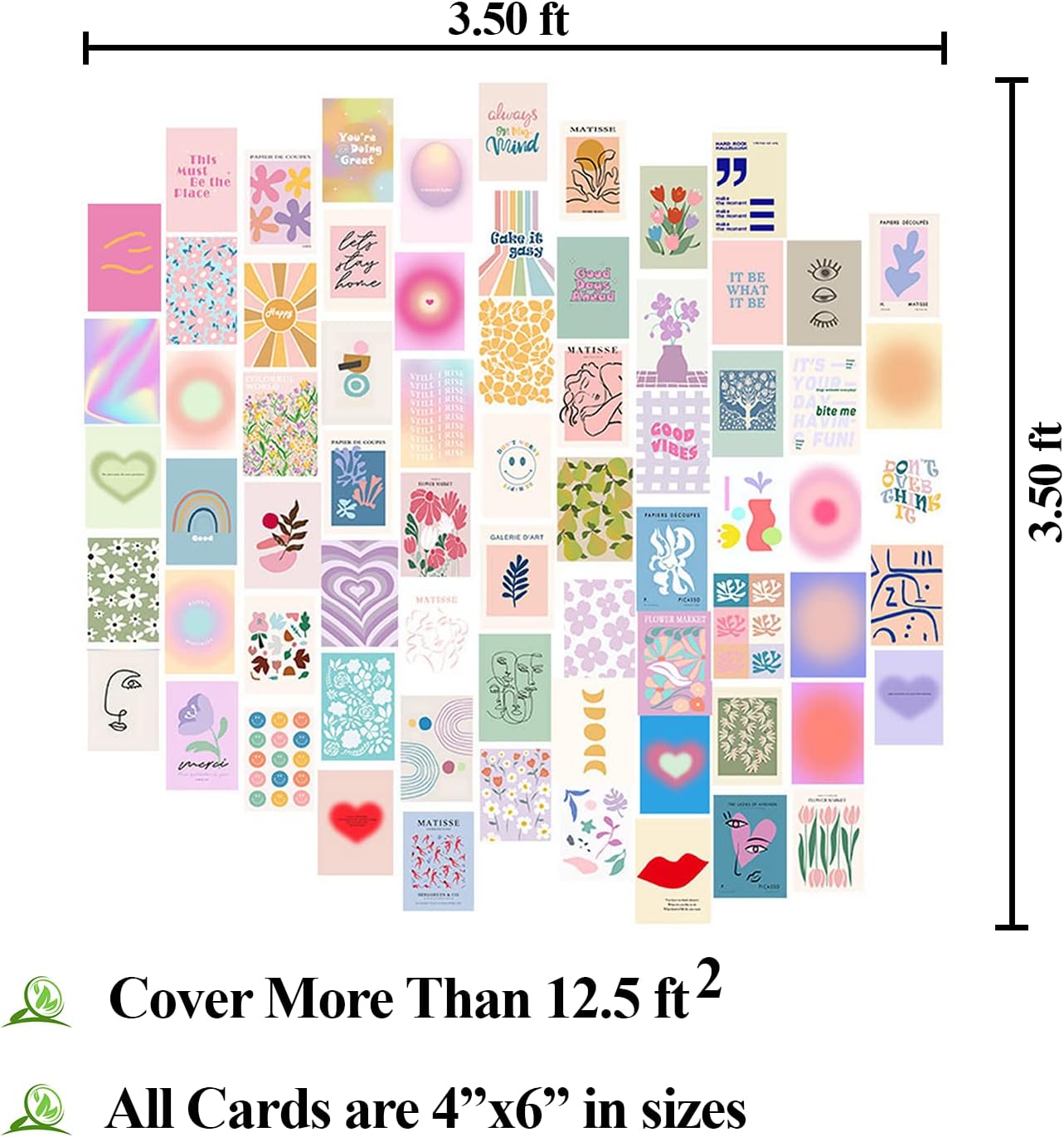 【WHAT YOU GET】70 pieces 4×6 inch danish pastel aesthetic pictures , 100 adhesive and 1 exquisite packaging box. Wall collage kit covers up to 12 square feet of wall space. Each photo needs to be taped to the wall and can be arranged in any way desired.