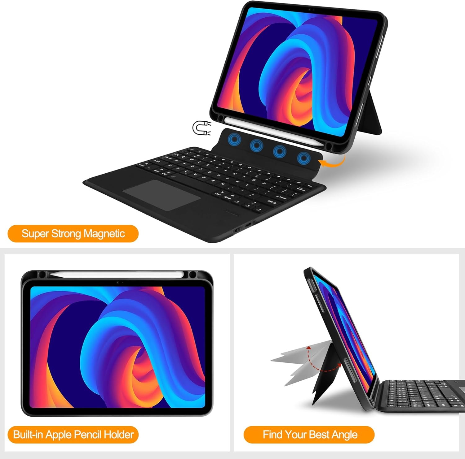 【Quick Navigation Trackpad】-iPad A16 11th/10th generation keyboard built-in high sensitive trackpad, allows you enjoy the convenience of performing multi-finger gesture control (like tap, swipe, scroll and switch apps), which easily browse, click, switch applications.
